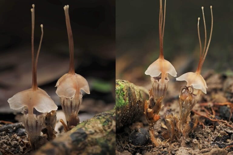 Seorang naturalis melihat tanaman yang tidak biasa dengan bunga berwarna putih-kemerahan di lokasi piknik populer di Hutan Simpan Hulu Langat, Malaysia. Ilmuwan mengidentifikasinya sebagai Thismia selangorensis, bagian dari kelompok tanaman misterius yang dikenal sebagai “lentera peri” (fairy lantern). Tanaman ini hidup sebagian besar di bawah tanah dan tidak memiliki klorofil, sehingga mereka mencuri nutrisi dari jamur.